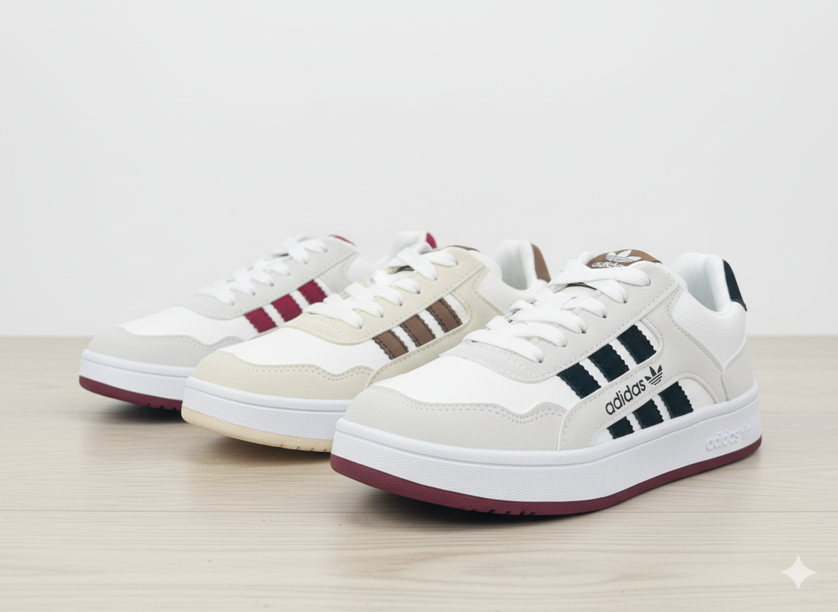 تصميم متعدد الخامات: يجمع الجزء العلوي بين الجلد الصناعي والشمواه أو النسيج الشبكي (Mesh) لخلق تباين أنيق في الملمس.