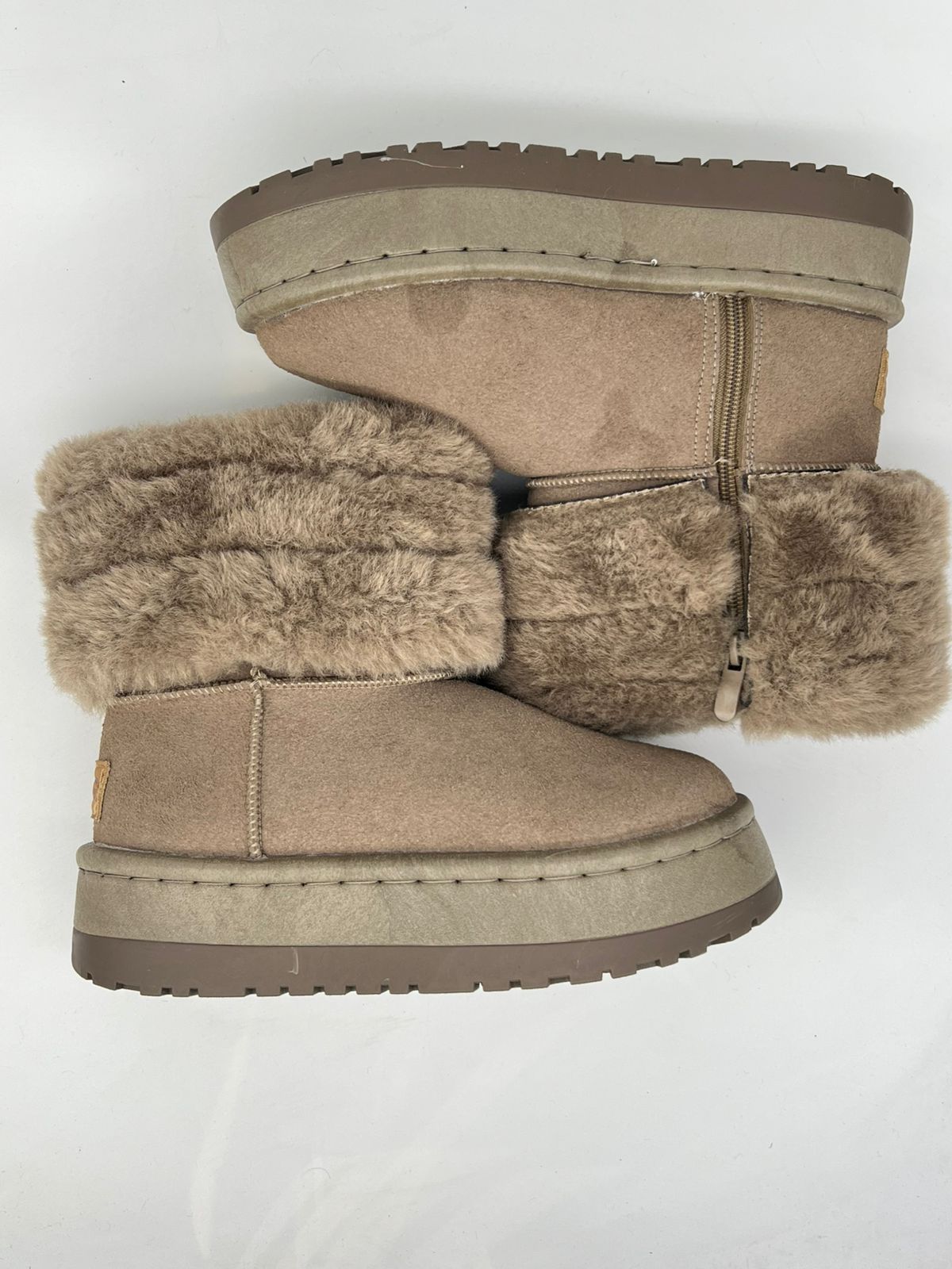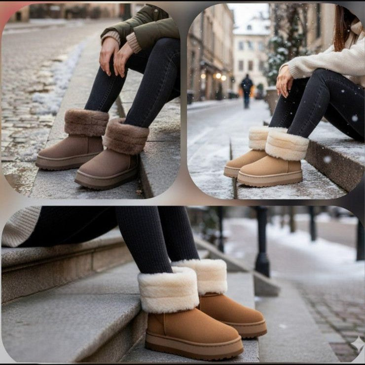 دفء فاخر ومُصمم بدقة: هذا البوت المبطن بالفرو يأتي بحافة فرو أنيقة وظاهرة تضيف لمسة من الرقي، وتضمن عزلًا حراريًا ممتازًا.