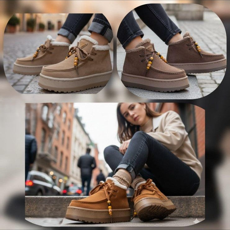 نعل Platform جريء: يتميز بـ نعل Platform عريض ومرتفع يواكب أحدث صيحات الموضة، ويوفر عزلًا حراريًا ممتازًا وراحة للمشي.