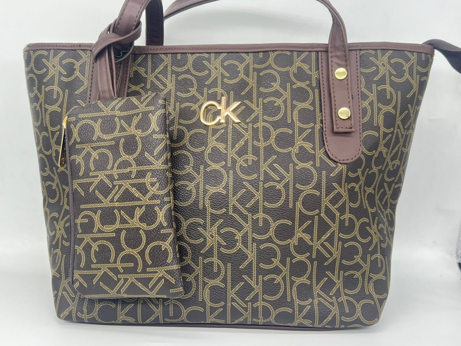 "شنطة توت باج حريمي - جلد لوجو CK Style - عملية وشيك (بـ محفظة صغيرة)"