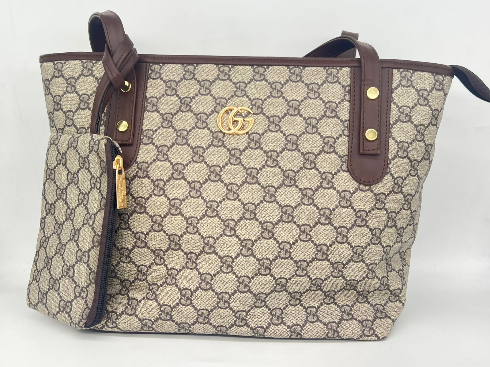 "شنطة توت باج حريمي - جلد لوجو ماركة عالمية - عملية وشيك (بـ محفظة صغيرة)"